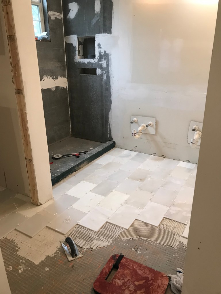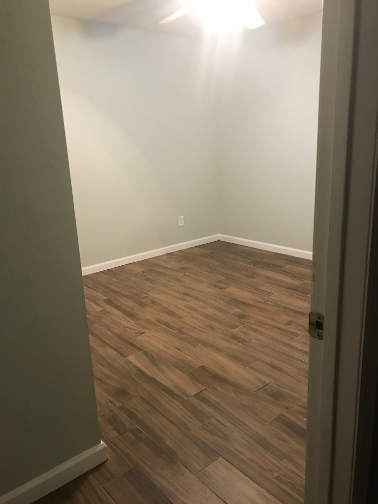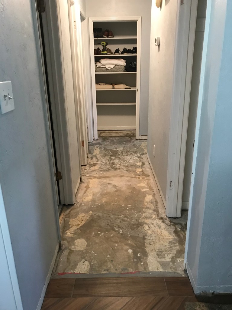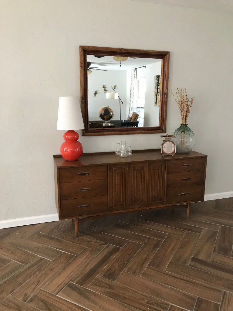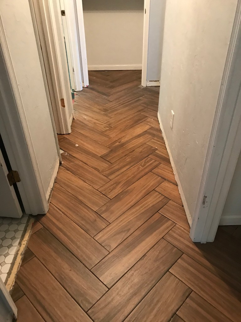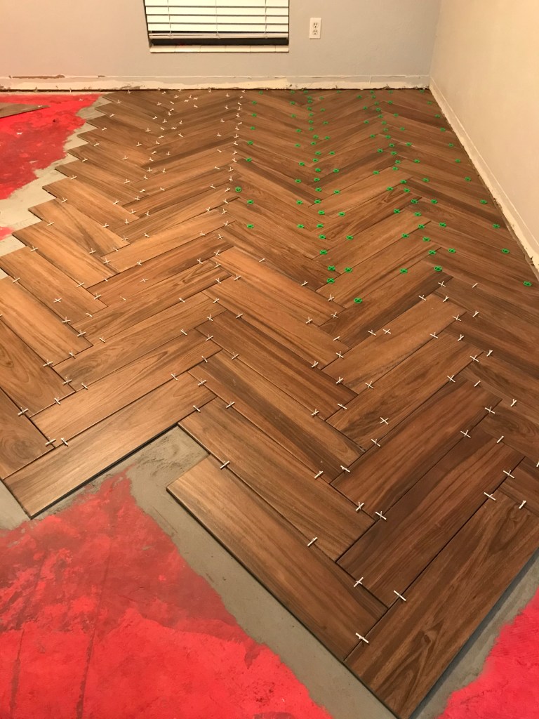 We were so over doing the herringbone pattern throughout the house that we laid an off-set patterned floor (kinda like subway tile) in the guest bedrooms.