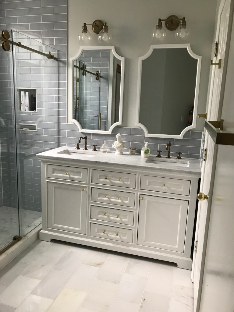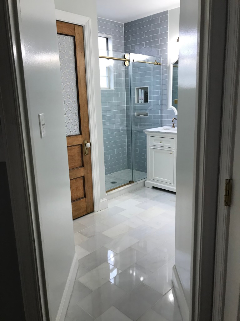 Wow, who knew baseboards were so transformative?! We hung the doors back up but not a big fan because they are hollow core but not worth the return to replace them. Sometimes you gotta let things ride when doing a remodel.