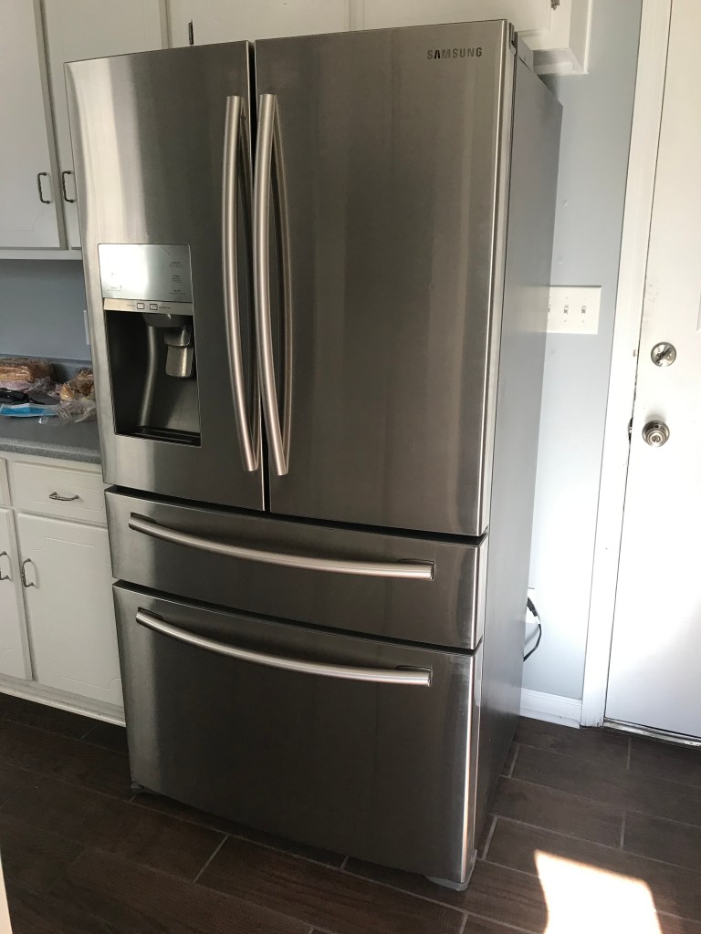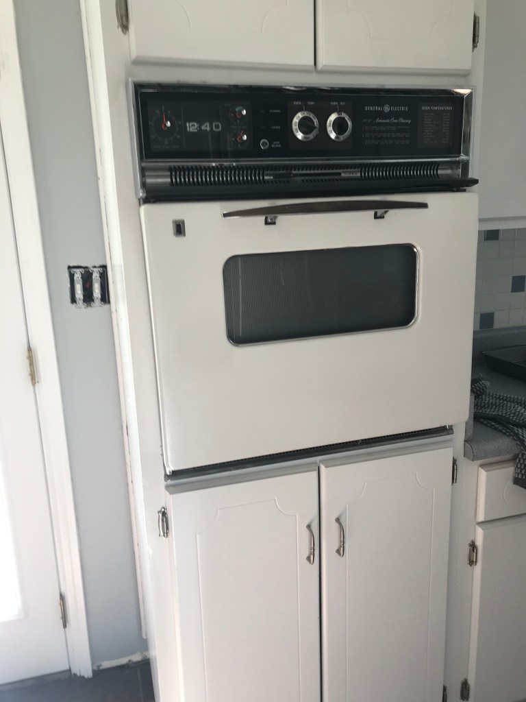 Now our kitchen is light and bright with a soft blue/green/gray color on the wall and a new light fixture (I got it for free from Facebook. A couple of the glass panes were cracked so I took them to Home Depot and had new ones made. That is a really nice light now!!!) It is so much brighter since we took the carport down too. I’ll throw in a couple more pics of the new, new kitchen.